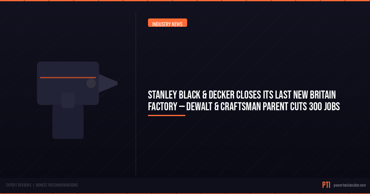 Stanley Black & Decker — the parent company of DeWalt, Craftsman, and Stanley — is shutting down its last manufacturing facility in New Britain, Connecticut. The closure will eliminate approximately 300 jobs and ends a manufacturing presence that the company has held in the city for over 180 years.